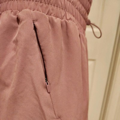 [This review was collected as part of a promotion.] All In Motion Womens Active Light Woven High Rise Shorts are so soft and comfortable! There are two different pockets, one a zip pocket, the other a standard open pocket. These are perfect for actually running, or for walking the dogs/hanging in the park with the kids. They adjust with this cool little toggle, so no drawstring getting in your way or flapping around. The pink is soooo pretty, too. My daughter is wearing an XS, she's 5'3" and around 100lbs. Definitely true to size, as this is her usual size. I received an incentive to write this review.