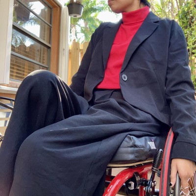 There’s a reason it says it’s adaptive seated fit, y’all! As a wheelchair user, this is my go to blazer. Fits true to size, looks great with the coordinating adaptive pants, doesn’t bunch the way standard blazers do, and doesn’t interfere with rolling or get caught in my wheels. The zippers don’t “add bulk” when you’re someone who needs them there. It’s nice to have an affordable option for the office.