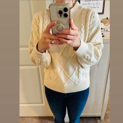 Women's Long Sleeve Cozy Alpine Cable Knit Crewneck Pullover Sweater - Universal Thread™ Cream - 2 of 3Women's Long Sleeve Cozy Alpine Cable Knit Crewneck Pullover Sweater - Universal Thread™ Cream - 3 of 3