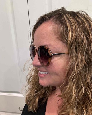 Women's Angular Round Tortoise Shell and Metal Sunglasses - A New Day™ Brown: UV Protection, Recycled Plastic Frame - 1 of 1