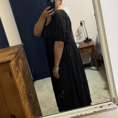 Take your fashion game a step ahead with this Balloon Short-Sleeve Midi Button-Up Dress from Ava & Viv™. Made from a rayon-spandex blend material, this midi dress provides stretchy comfort. It features a square neckline and boasts balloon short sleeves for an elegant look. Additionally, the princess seams on the sides help accentuate your silhouette. From brunches to date night, it's the ideal dress you can count on.