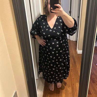 [This review was collected as part of a promotion.] This Ava & Viv bishop sleeve midi dress was such a great find. The black fabric with the tiny cream bows gives it a sweet, feminine look without being overly busy. The fit in XXL is relaxed and flattering on me, and I love how it drapes beautifully without clinging. It’s an easy dress to throw on for work, errands, or even a casual dinner.
