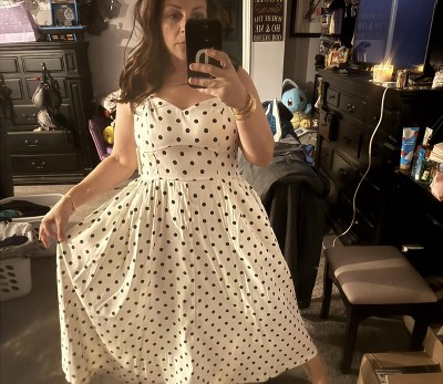This reminds me of old Hollywood or a Kate spade inspired fit. I took mine off the Mannequin at the store because it was the only one in site and not online at the time. Dots like a glove for my pear shape. and i love that the bust isn’t revealing. And dress up or down, wear day or night. Love this.