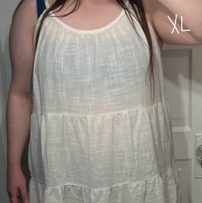 I bought the white. Love the light material like muslin or gauze. Cute braided straps that are adjustable, that’s my favorite part. Definitely see-through so better as a swim cover up than a dress to go out. Only downside is that after the first wash, it shrunk from over my knees up to my thighs, barely covering up my swimsuit. Major shrinkage. Went from a dress to a top. Highly disappointed. I’m 5’3 with a bust of 40C so the XL was the perfect loose fit I needed for a swim cover up.