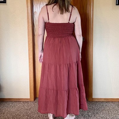 [This review was collected as part of a promotion.] This dress in size S fits true to size. It’s a maxi dress that hit perfectly to my ankles, which is great since maxi dresses tend to be too long on me. It has a stretchy scrunched bodice that is fitted then turns flowy towards the skirt part which has a tiered design. The material is thin and lightweight but not see through. The red color option is more of a rust color and has a nice spring to summer hue and even fall like. Pair with sandals or even canvas shoes for more casual look. For reference I’m 5’4” and measure at 32-28-38. I received an incentive to write this review.