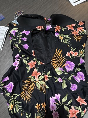 The Shade & Shore Women's Center Ring-Front Tummy Control Bandeau Full Coverage One Piece Swimsuit is adorable. I love the floral print, it’s feminine and delicate. The ruching on the stomach area is great for hiding flaws. The center ring and back strap add a nice stylish detail to the one piece. I also love the removable strap to take this swimsuit from strapless bandeau to straps. This is a high quality swimsuit that I know I will get years of wear out of.