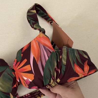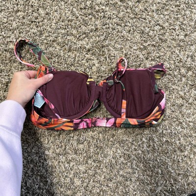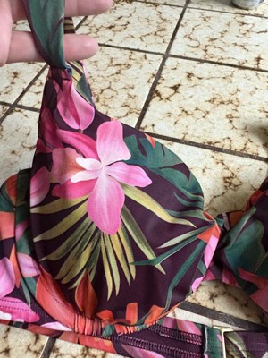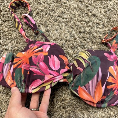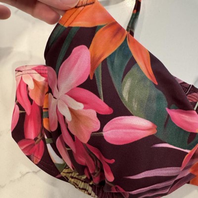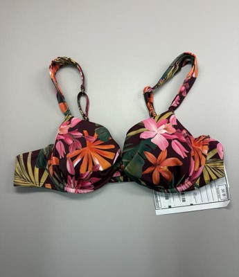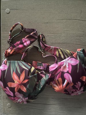 The Shade & Shore™ women’s bikini top comes in bright multi color floral topical pattern that is perfect for that beach vacation. It has a cute center twist-front detail that is a very trendy look. It has comfortable underwire for a very supportive fit. The adjustable straps and a back hook and loop fastener helps you find the right fit along with the specific cup sizing. It also has the option of removable cups. Made from nylon-spandex blend 4-way stretch tricot fabric with 100% recycled polyester lining.