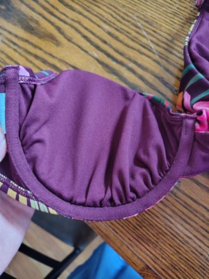I like the rich colors of this bikini top. The wider straps are comfortable, and the underwire is comfortable and does not cut or jab.