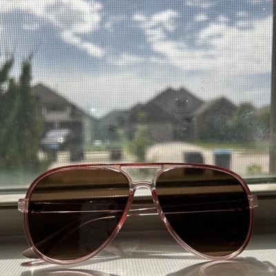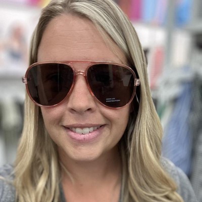 Shield your eyes in style wherever you go with these Classic Aviator Sunglasses from Shade & Shore™. Designed in solid pink and brown hues, these aviator-style sunglasses flatter a variety of face shapes and hairstyles. The lightweight construction offers all-day comfortable wear, while UV-protection lenses help protect your eyes from the sun.