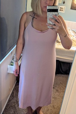 This nightgown is so soft and so comfortable. I usually don’t go for nightgowns because I’ve had three kids and I need a little support. The shelf bra is really comfortable and supportive, but not too tight. The back straps are super cute, but also not tight. I wish there were more colors cause I like it that much.