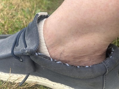 A: The socks are primarily made of 73% polyester and 25% recycled polyester.
