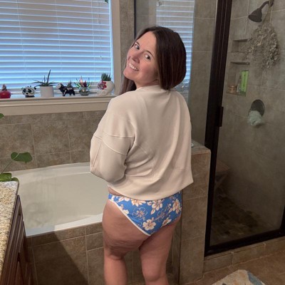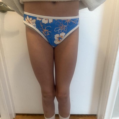 Blue bikini bottom from Wild Fable™ covered with floral print. Soft and stretchy fabric with full lining provides comfort in and out of the water, while contrast binding elevates the look. Features medium coverage for confident wear. XXS-XL offer low-rise design, while X-3X offer mid-rise design.