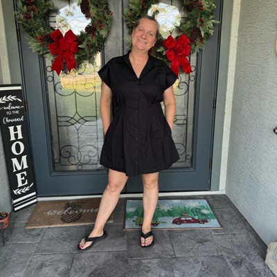 Add refined charm to your wardrobe with this Corset Mini A-Line Dress from A New Day™. The poplin corset A-line dress features a collared neckline and cap sleeves for classic detailing. A full-length button-down front adds versatile styling options, while the corset-inspired silhouette creates a flattering fit. Crafted from midweight cotton for breathable all-day wear, this mini dress is finished with convenient side pockets for keeping essentials close.