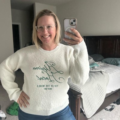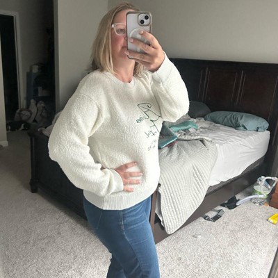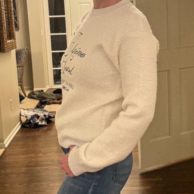 [This review was collected as part of a promotion.] I purchased this cozy knit pullover sweater in an XS. I am 5’4” and 130 lbs. I am typically between XS and S, am I’m glad I sized down. The small would also fit but would just be a baggier look. I’d order based on how you would like for to be. I loved the warm white color. This had major ski vacation vibes. It had a vintage look to it that I really liked. It is super comfy! Perfect sweater to cozy up on the couch and watch your favorite holiday movie.