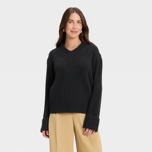 Women's Long Sleeve V-Neck Cozy Knit Boxy Pullover Sweater - A New Day™ - 1 of 3