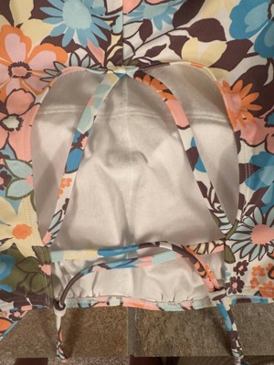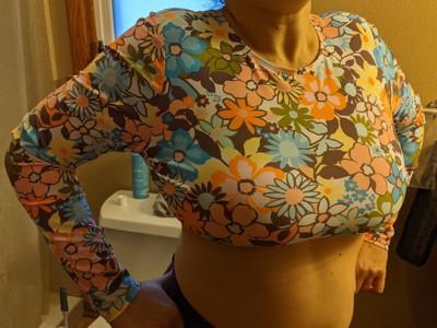 Women's Cross Back Swim Rash Guard - Wild Fable™ Neutral Floral Print M: Long Sleeve, Removable Cup