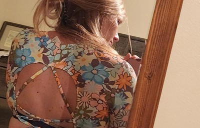 As the wife states; the fit is good (L ok as she usually wears M/L tops, her bust is 38D), the pattern is horrendous. She takes issue with the limited protection. Mainly the back, which would leave her tattoo exposed. It would leave an odd tan line for sure.