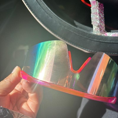 • Oversized pink shield sunglasses with colorful lenses