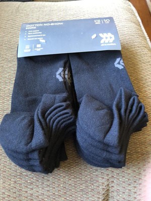 Ten-pack of black no-show socks are great for your athletic activities and everyday wear. All the pieces are made with moisture-wicking fabric and ventilating mesh to help keep your feet dry, while the arch support, zone cushioning, reinforced toe and heel add to the comfort.