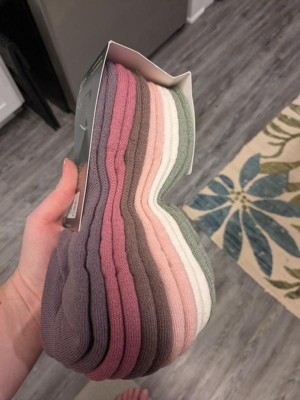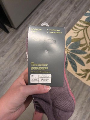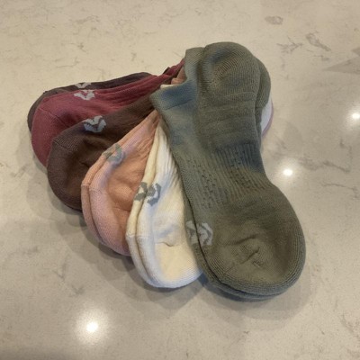 A: The pack includes six pairs of assorted solid-color no-show socks.