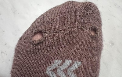 A: The socks are made from 51% recycled polyester, 37% cotton, 6% nylon, 4% polyester, and 2% spandex.