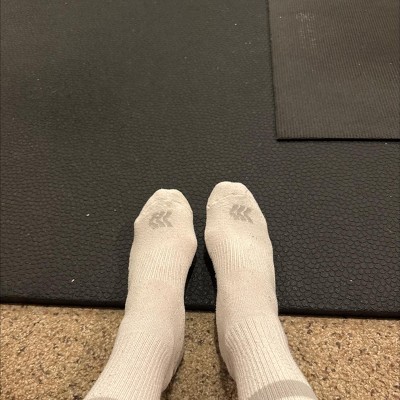 The women’s all in motion mid crew socks were very comfortable. The socks were cushioned in the heel and toe area and provided elastic support in the arch and around the ankle. The socks fit snugly on my leg and did not roll down while wearing. The socks are just right and not overly thick. The socks were breathable and would be the perfect sock to wear in the summer or warmer weather.