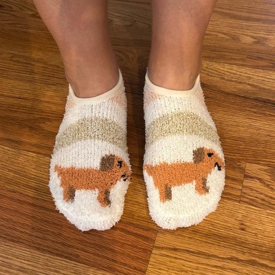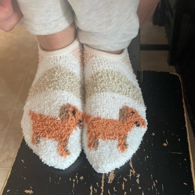 A: These socks feature a charming dog pattern that adds a playful touch to their design.
