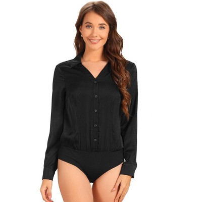 Love this bodysuit! Very comfortable and shows some cleavage for a little extra “umph” from a plain shirt! The green is bright and perfect for spring, summer and fall! There isn’t a lot of stretch with this bodysuit, I’m either a medium or large in shirts/bodysuits and I purchased the large.