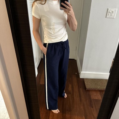 I really like these pants. They are super soft and comfortable, but you could also dress them up a little bit. I bought a size xs which seemed to work well.