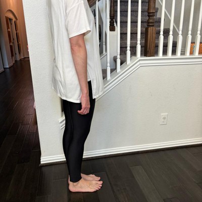 [This review was collected as part of a promotion.] I am 6 feet tall and typically wear a size 8-10 in pants. I am wearing a size large in these leggings. They are very fitted, so large is the best size for me. First off, the ankle is very tight, so tight that they were hard to get over my feet. They should be easier to get on. They are long enough for my long legs which is nice. The material is soft on the outside, but the interior to me is not comfortable. It is almost scratchy. The waistband is however comfortable with good coverage. I received an incentive to write this review.