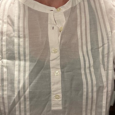 [This review was collected as part of a promotion.] I am normally between a size small and medium and clothing. I bought the size medium, and the shirt and it was definitely big on me. The shirt is maybe the most un flattering shirt that I have ever worn. It looked a little better once I did a front tuck, but leaving it, leaving it out just made me look frumpy. The color is an off-white and it is definitely a little see-through. It will wrinkle terribly. I definitely don’t recommend. I received an incentive to write this review.