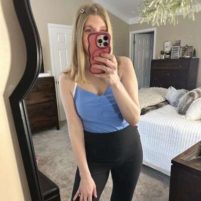 ALMOST perfect daily tank! I highly suggest sizing up one. I am usually a medium but had to exchange for a large because the straps are not adjustable and they were too tight in the chest/under arm area (36A). I also wish this was 1-2 inches longer so I could tuck in better with high waisted jeans. Overall still super cute and great for casual wear!
