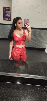 This heart tank top fits great, looks amazing with matching leggings, love the ruffle edges, medium compression material