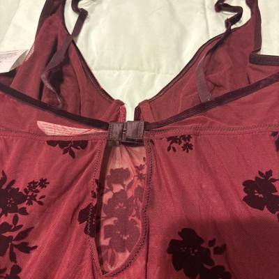 Look and feel your absolute best in this Flocked Lingerie Slip Dress from Auden™. This lingerie slip dress showcases allover flocked flower accents with lettuce-trim detailing on the hem for a lovely look. Made of soft nylon-spandex blend knit fabric with mesh liner, this flocked slip dress offers comfortable wear that moves with you. Showcasing a flattering V-neckline, it also has adjustable straps and a back hook-and-loop closure to help you find the right fit.
