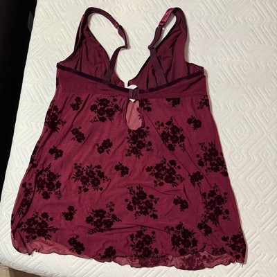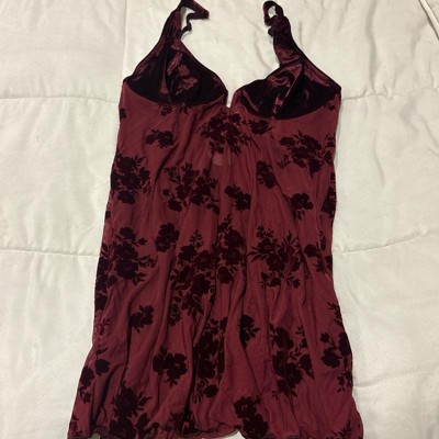 [This review was collected as part of a promotion.] This flocked lingerie slip dress is a beautiful find! I ordered the black in size XL. The velvet and nylon-spandex fabric are both very soft and comfortable. Since the cups are made of the velvet fabric and unlined, they are less fitted and can be floppy if you’re like me and don’t fill them out. I love it so much though so I plan to repurchase and size down. The back clasps and straps are adjustable which gives flexibility in fit!