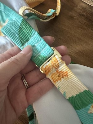 Freshen up your swimwear with this Floral-Print Bralette Bikini Top from Shade & Shore™. Made from recycled polyester-spandex blend fabric and full lining for comfortable wear, this bralette bikini top showcases a U-wire front accent and multicolor floral pattern on a ribbed backdrop for a lovely look. It has adjustable straps with buckles and a back hook-and-loop strap for a personalized fit. Plus, sizes D/DD feature an extra adjuster at the back closure (swan hook).