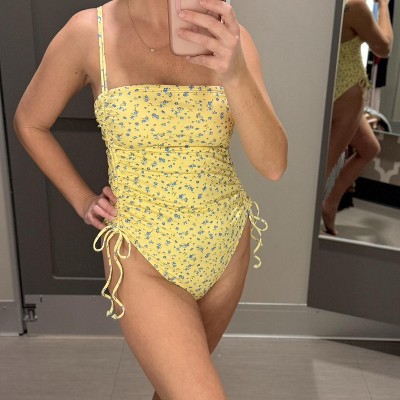 Women's Floral Print Extra High Leg Cheeky Adjustable Tunneled Side One Piece Swimsuit - Wild Fable™ Yellow - 2 of 4Women's Floral Print Extra High Leg Cheeky Adjustable Tunneled Side One Piece Swimsuit - Wild Fable™ Yellow - 3 of 4Women's Floral Print Extra High Leg Cheeky Adjustable Tunneled Side One Piece Swimsuit - Wild Fable™ Yellow - 4 of 4