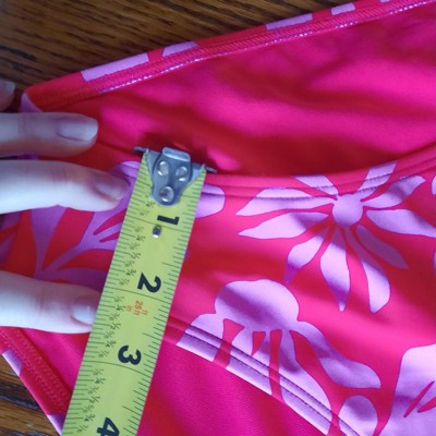 This vibrant bikini bottom is as advertised. Looks exactly as in picture, red and pink. Does run slightly smaller than typical. Nice material but no extra in crotch area as is customary. Pairs nicely with either red or pink top of your choosing
