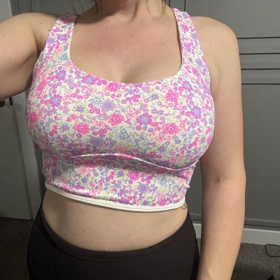 Women's Floral Print Piped Longline Sports Bra - JoyLab™ Pink M