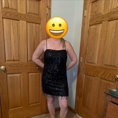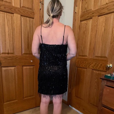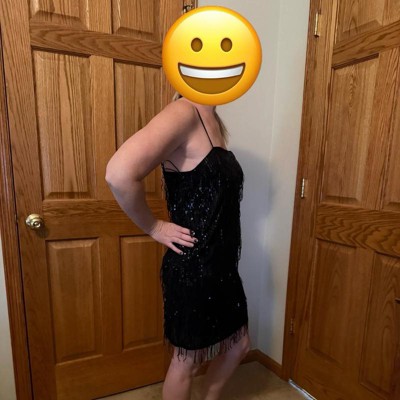 [This review was collected as part of a promotion.] I am 5’5” tall and normally take a size large dress. This dress fit fits true to size. I am obsessed with this dress! It is super comfortable to wear, has adjustable straps, the inside is lined, and the fringe is very flowy and looks and feels elegant. I purchased this dress to go to a New Year’s Eve dance and I can’t wait to see my husband‘s reaction.