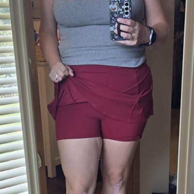 [This review was collected as part of a promotion.] Workout skorts are my new obsession so I love to find different colors and styles and these women’s game day drop waist skirts from JoyLab are fantastic and offer fun, comfortable and stylish skorts to my workout. I’m in love with this maroon color, it’s perfect for football season. The fit is great and true to size and I’m wearing my usual size large. My measurements are 33 inch waist and 41 inch hips. I received an incentive to write this review.