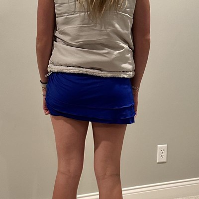 [This review was collected as part of a promotion.] My daughter is wearing this skirt and the size small. I was initially drawn to this piece because it is the blue color that they use at her school. I thought she would maybe be able to wear this to school functions. Overall, the quality of the piece is nice. it was a little shorter on my daughter than I expected. I was happy to see that it had shorts underneath. When she put it on, the shorts would show, and the surprise me. I like the wide waistband and that this has a high-rise in the waist. I received an incentive to write this review.