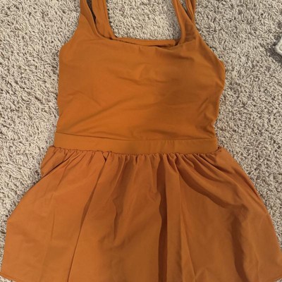 Elevate your athleisure collection with the Game Day Bubble Skort Active Dress from JoyLab™. Made from nylon-spandex blend fabric, this sleeveless active dress features a built-in shelf bra and shorts that give you the confidence to move freely without any discomfort. It sports a square neckline with a keyhole back for breathability. Designed in a solid color, the dress boasts a bubble skirt with a side pocket for added convenience.