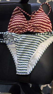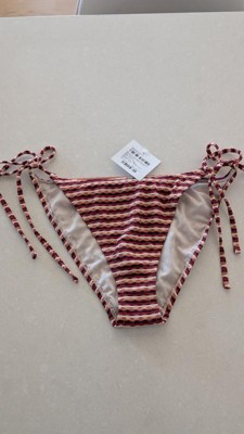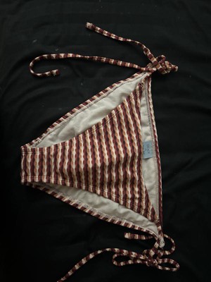Cute pair of string bikini bottoms. The sides are adjustable with plenty of length. The print reminds of a 90s style, something that would have been around while I was growing up. A bit cheeky and does have some texture.