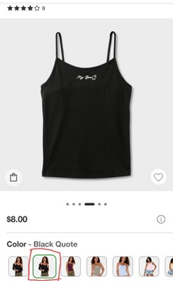 Ordered two black tanks with My Boo on them and received two with something else written on them. Very disappointing. Target can do better than this.