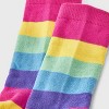 Step into the festive season with these delightful crew socks, featuring a charming gummy bear design in assorted colors. Crafted with a blend of recycled polyester, polyester, and spandex, these socks offer a lightweight feel and stretchy comfort to accommodate sizes 4-10. The banded cuff ensures a snug fit, perfect for all-day wear. These multicolor socks showcase a classic striped pattern that adds a playful touch to any outfit, making them a fun and cozy choice for cooler days.
