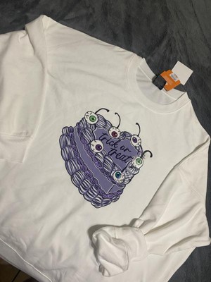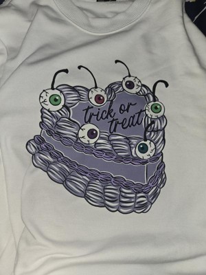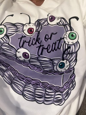 This sweatshirt is sooo cute. It’s a girly Halloween vibe. The Cake design is so cute and has a touch of Halloween with the eyeballs. The inner lining is fleece so it will definitely be warm. I got an XL and it’s oversized for comfort.