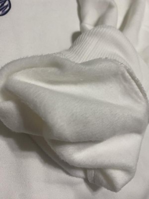 This sweatshirt is really cute and can’t wait to wear it this fall. It’s light weight but has a nice layer of warm fleece inside. The Halloween image is cute, and bright. It fits true to size with a little give and washes well.
