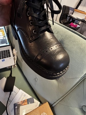 Shoe looks like it would be comfortable, but it’s not. Seems like it may take a while to break in. It also looks like a combat boot you’d love to wear. But when it was delivered it looked very costume like (a little witch-y). Not a fan after trying them on and looking at it in person. This will be returned to the store.