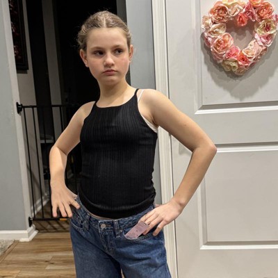 [This review was collected as part of a promotion.] This thicker material tank top is great by itself or layered underneath of something my daughter is wearing her traditional size Which is xxs And this fit her perfectly both in the length and in the width I feel like this is a top that you probably would not have to wear a bra with all the time or a strapless bra would probably look best because of the thinner straps. I really like that this top can also look cropped. just add on a pair of shorts to complete your look I received an incentive to write this review.